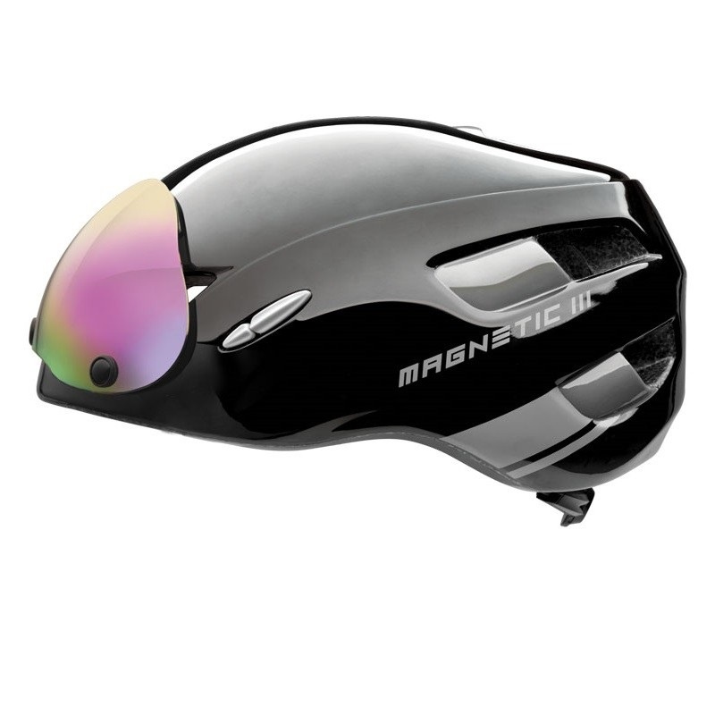 Prilba cestná BRN Magnetic III s inovatívnym dizajnom, ktorý usmerňuje prietok vzduchu cez prilbu a udržuje tak jej vnútorný priestor vetraný a zároveň zvyšuje aerodynamické vlastnosti prilby.Parametre: