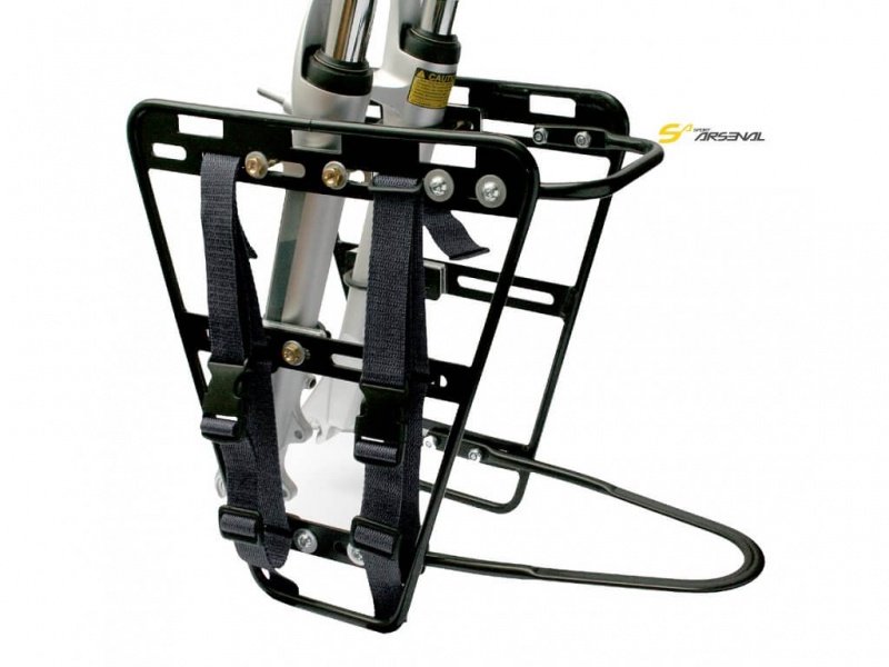 Predný hliníkový nosič batožiny Sport Arsenal Art. 204 pre expedičnú a náročnú cykloturistiku a je určený najmä pre niekoľkodennú až niekoľkotýždennú cestu. Nosič môžete použiť i v prípade, že máte na bicykli kotúčovú brzdu. Predný nosič je vhodný najmä k lepšiemu rozloženiu nákladu na celom bicykli, tzn. odľahčenie zadnej časti bicykla a posunutie ťažiska viac do stredu. Bezpečnostný popruh, ktorý dokonale zaistí batoh a zaručí jazdu bez rozkmitania. Nízka hmotnosť nosiča pri zachovaní vysokej nosnosti a tuhosti. Toto všetko robí z tohoto predného nosiča absolútnu špičku.• Nosič môžete použiť aj na kolobežke.