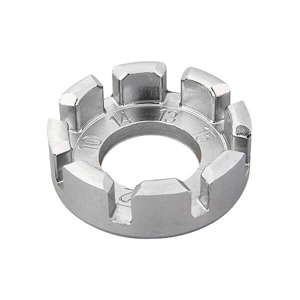 Univerzálny kovový centrovací kľúč Super B TB-5510 tanierovitého tvaru s ôsmymi zárezmi pre rôzne priemery niplov.Parametre