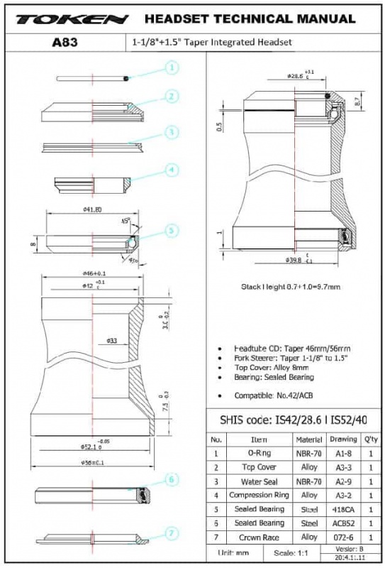 Hlavové zloženie A-head 1 1/8" - 1,5" Token Omega A83 Token