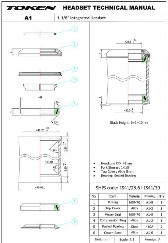 Hlavové zloženie A-head Token Omega A-Series Prime využívajú osvedčené materiály, aby sa hlavové zloženie dlho otáčali hladko. Všetky hlavové zloženia Token sú testované za všetkých podmienok, takže budete mať istotu, že získate prémiový produkt.V hlavových zloženiach Omega A-Series sa používajú vysoko leštené ložiská Premium s uhlovým kontaktom, aby sa zaistila hladkosť chodu. Vrchná krytka je z hliníkovej zliatiny 6061 a CNC obrábaná a je utesnená, aby sa zabránilo vnikaniu vlhkosti od ložísk. Aby sa zabránilo poškodeniu spodného ložiska, je korunka vidlice vyrobená z tvrdenej hliníkovej zliatiny 7075.