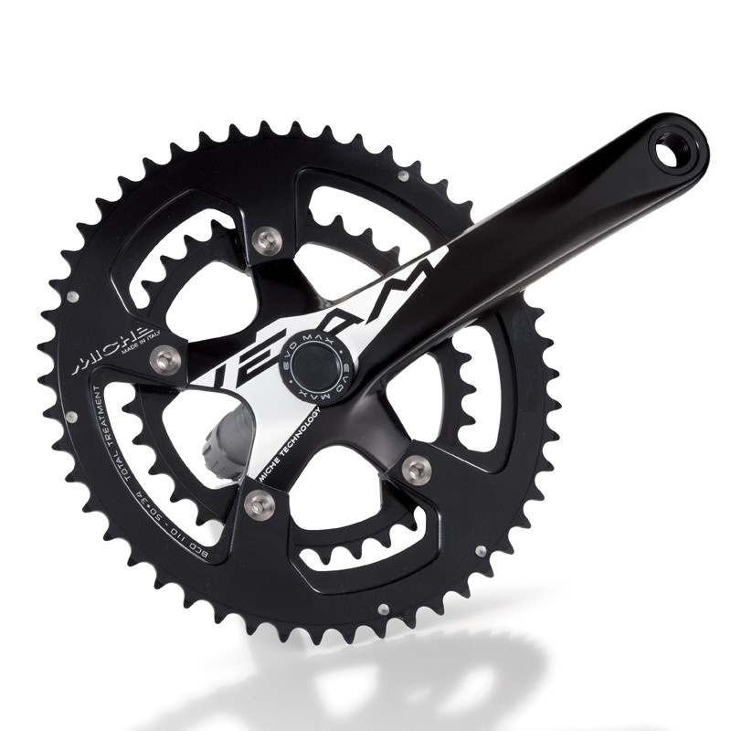 Kľuka s dvojprevodníkom Miche Team Evo Max pre 2 x 10 stupňové radenie v modernom dizajne.Kompatibilná so stredovým zložením: