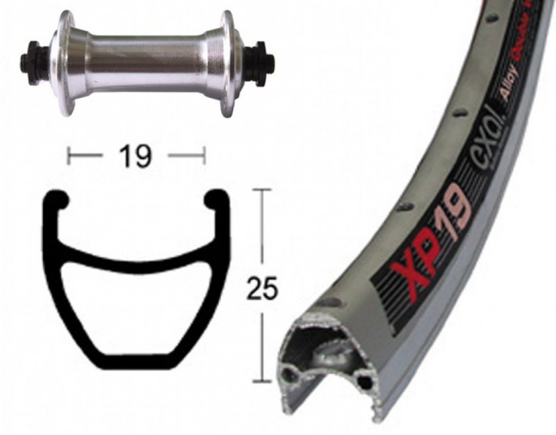 Koleso predné 28" pre bežné využitie s dvojstenným hliníkovým ráfikom EXAL XP 19 a hliníkovým nábojom Shimano RM40.Parametre