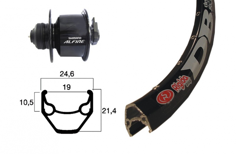 Koleso predné 28" s dvojstenovým hliníkovým ráfikom Ryde ZAC 2000 Disc a hliníkovým nábojom Shimano Alfine so zabudovaným dynamom. Pre kotúčové brzdy s upínaním kotúča Centerlock.Parametre