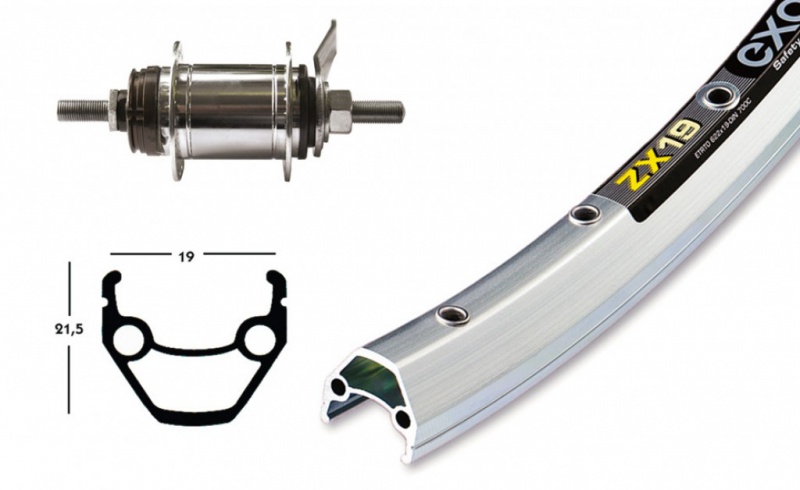 Koleso zadné 26" s dvojstenným hliníkovým ráfikom EXAL ZX 19 a nábojom Shimano so spätnou brzdou.Parametre