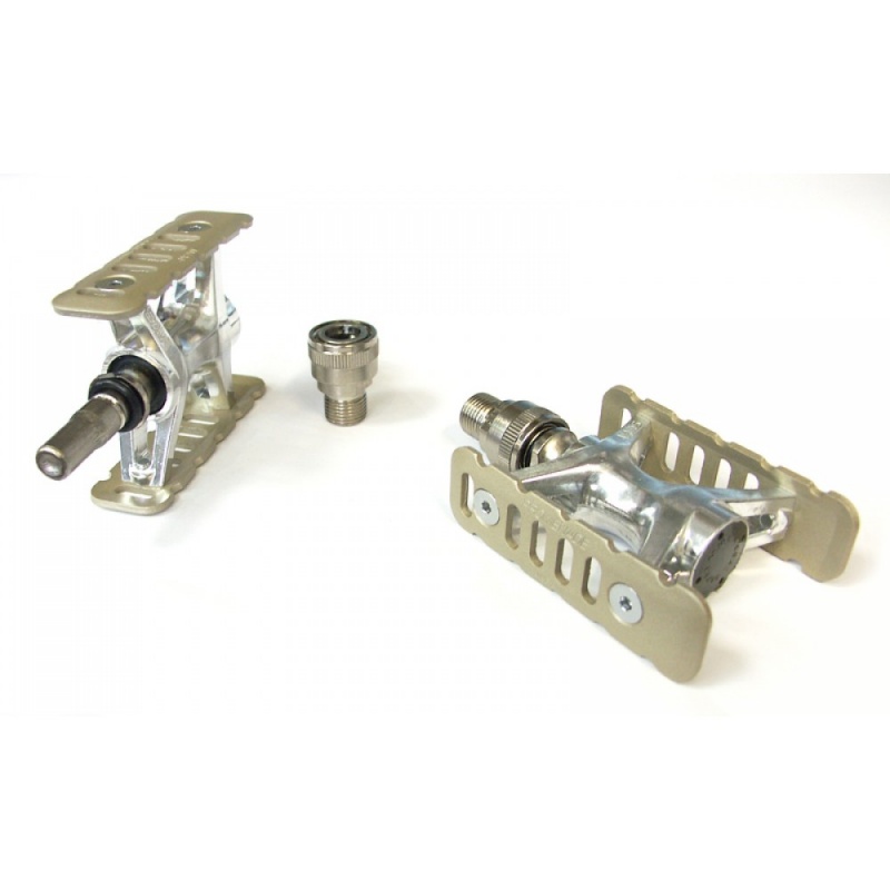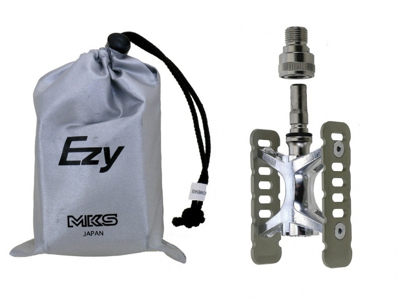 Pedál rýchloupínací MKS Promenade Ezy je najlepším rýchloupínacím pedálom na trhu. Ponúka jednoduché a rýchle odpojenie z kľuky bicykla bez použitia náradia, čím zmenšíte potrebný priestor na prepravu alebo skladovanie bicykla a zároveň odradíte prípadných zlodejom vášho bicykla. Je ideálnym dizajnovým kúskom pre nadšencov skladacích bicyklov. Súčasťou dodávky je praktické vrecúško na uskladnenie pedálov.Parametre