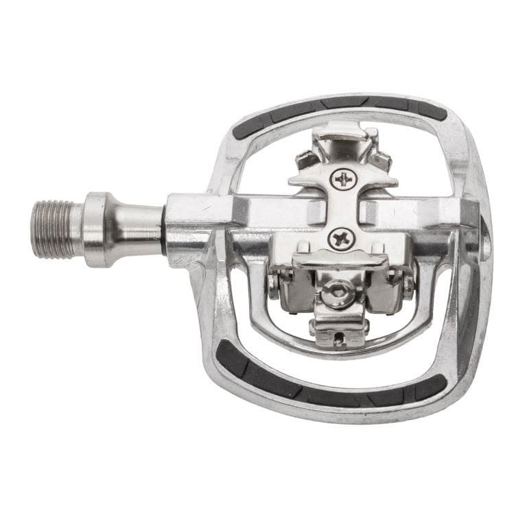 Jednostranný nášľapný pedál M-wave Drag-T1 je využiteľný v meste ako aj pri trekingových jazdách. Pedál kombinuje nášľapný SPD mechanizmus a z druhej strany pedála platformu s protišmykovou gumennou úpravou na normálnu obuv. Zapnutie a vypnutie topánky je ľahšie ako pri klasických MTB pedáloch.Parametre