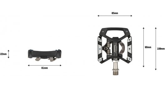 Jednostranný nášľapný pedál Shimano PD-T8000 s hliníkovým telom a rámom a CroMo oskou určený pre trekingové bicykle. Pedál určený pre jazdcov jazdiacich s obyčajnými topánkami ale aj cyklo tretrami. Pedál má na jednej strane nastaviteľný SPD zámok pre jednoduché nacvaknutie/vycvaknutie tretry z pedálu. Druhá strana pedálu s protišmykovými pinmi a konkávnym tvarom pre lepšiu účinnosť je určená pre obyčajné topánky. Kompatibilné so Shimano SPD systémom. Dodávané vrátane kufrov.Parametre